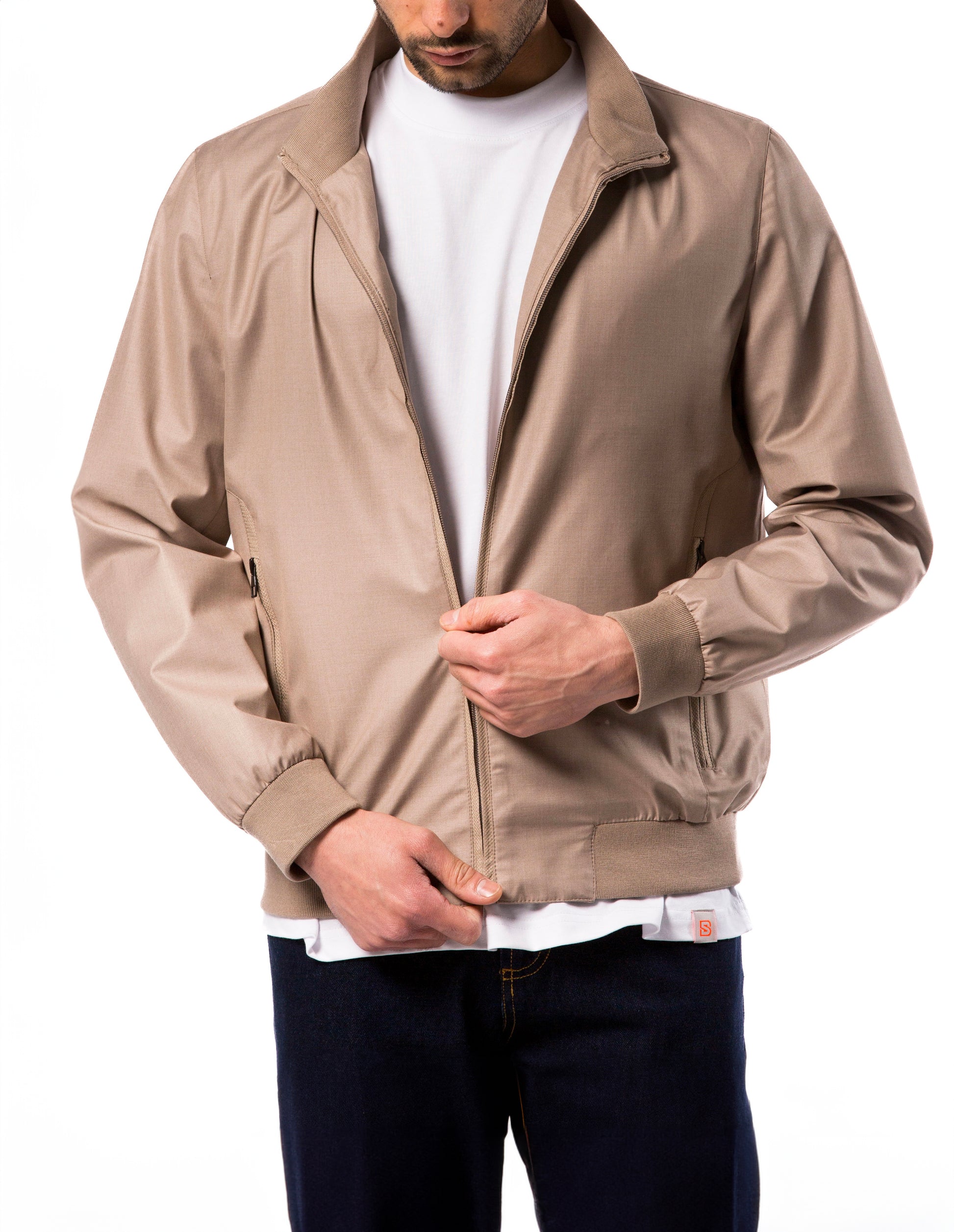 Giubbino Uomo Beige Leggero Zip Collo Alto